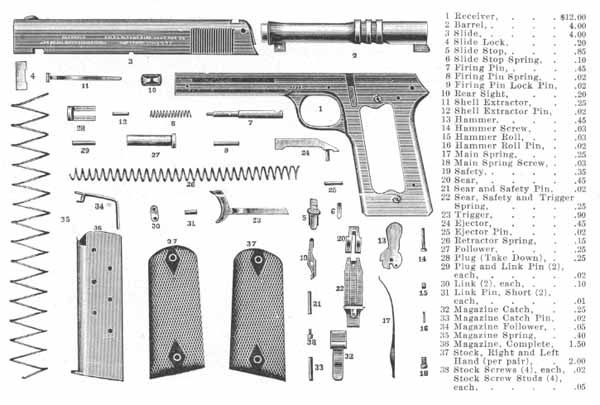 Colt Model 1907 U.S. Military Trials .45 ACP - Parts Identification