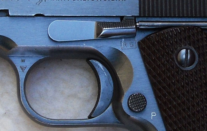 Colt Model 1911A1 - Blued Colt M1911A1 .45 cal. serial number 728207, RS inspectors mark on left side of the frame.  Pistol was shipped in a batch of 2,500 to the Commanding General at Springfield Armory on April 30,1941.