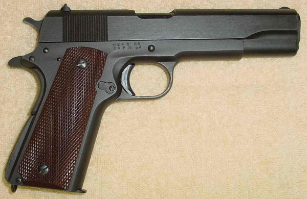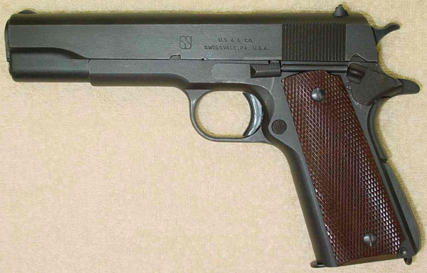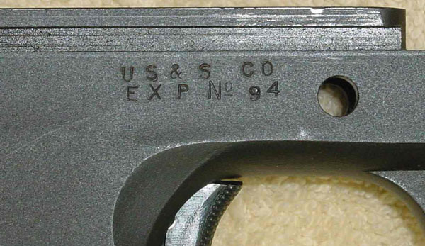 Union Switch and Signal Model 1911A1 serial number EXP No 94 - One of approximately 100 trial run receivers, slides and other component parts were manufactured prior to full production to set up and try out the manufacturing equipment. These receivers were later assembled with slides and other parts from prevailing production, and numbered 1 to about 100. The markings and finish on these pistols were not consistent, as they were assembled by three or four different machinists. Consequently, the markings may feature a large or small ampersand (&) symbol, and an No or NO serial number prefix. Some are buffed and blued (Du-Lite bluing); some are blued but not buffed; some are buffed and blued with the top of the slide sand blasted; and some are blued over a sand blasted surface resembling a parkerized finish.