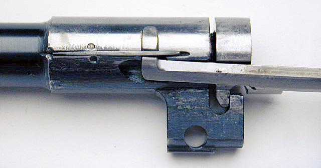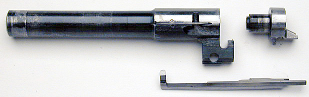 Barrel, floating chamber and milled ejector.  On the early barrels they peened a short piece of piano wire to the barrel and cut a groove into the ejector to retain the ejector in place.