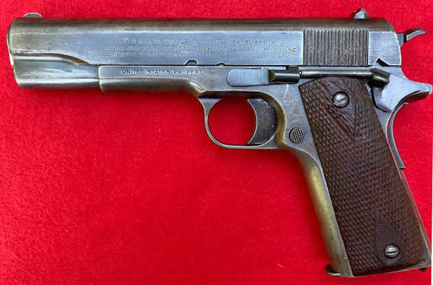 This Remington UMC contract 1911 pistol has a thumb safety with unusual