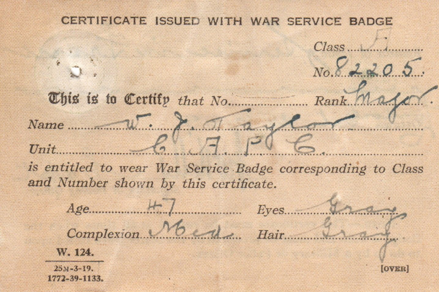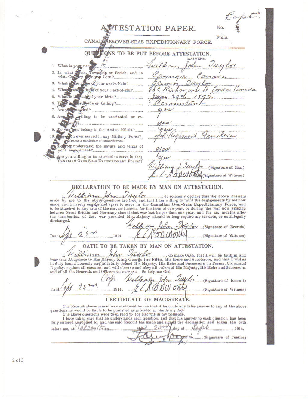 WW1 1914-1918. Major Taylor was with the 1st wave of the CEF