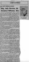 Maj. John W. (Jack) Hession, 84, who some claim was the greatest rifle shot that ever squeezed the trigger, died in Clearwater yesterday. He lived in the Carlouel section of Clearwater Beach.