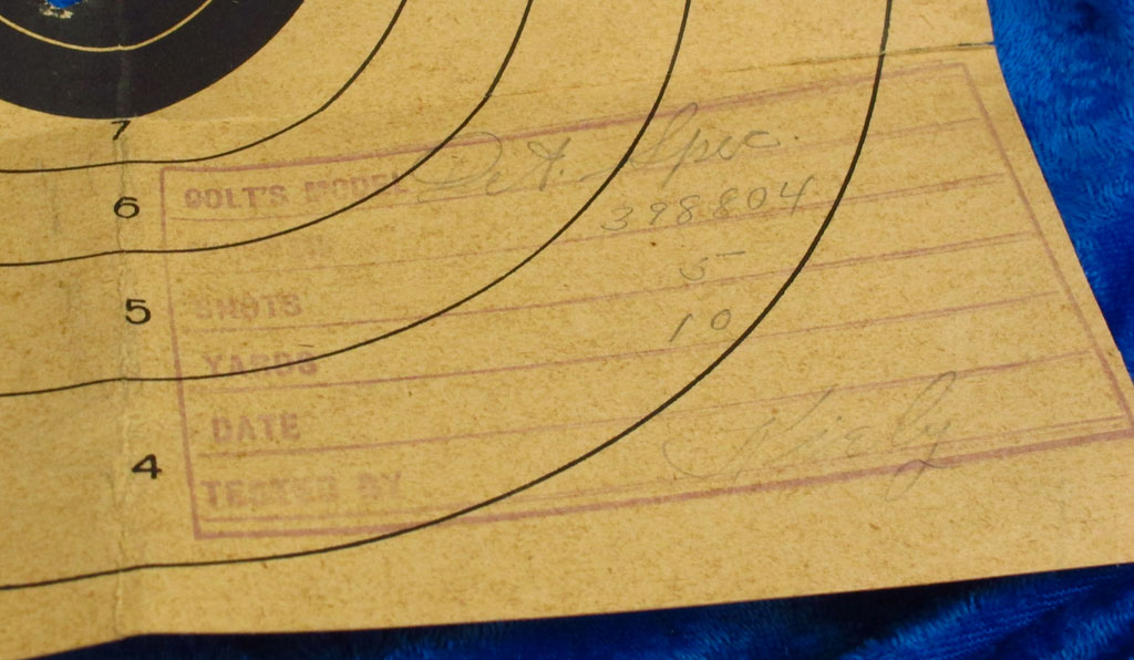 - details of factory "10 yard" test target numbered to the gun and signed by