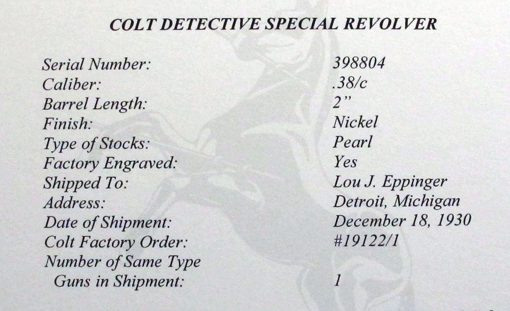 was shipped to Lou J. Eppinger, Detroit, Michigan on December 18, 1930 on