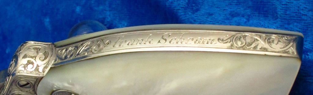 - Rear grip strap showing close-up of factory inscription to Frank Schram.