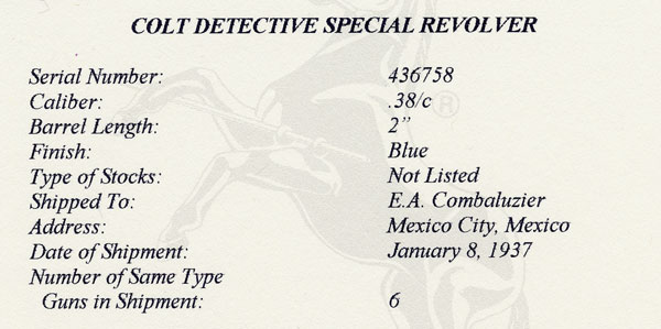 This revolver was shipped on January 8, 1937 to E.A.