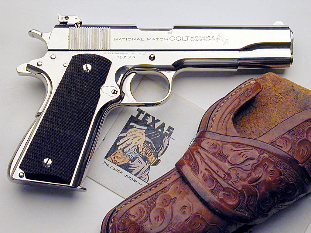 Colt Government Model National Match .45 ACP Serial Number C189556 with Factory Nickel Finish, Stevens Adjustable Sights and Swartz Safety (New Safety Device)