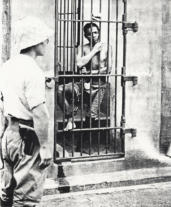 | Political prisoner in Batavia, Java, jailed under Dutch colonial rule, awaits his release by the Japanese. (From the Time-Life Books "The Rising Sun") |