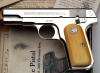 February Colt Model 1908 Pocket Hammerless .380 ACP shipped with with factory nickel finish and medallion ivory grips.