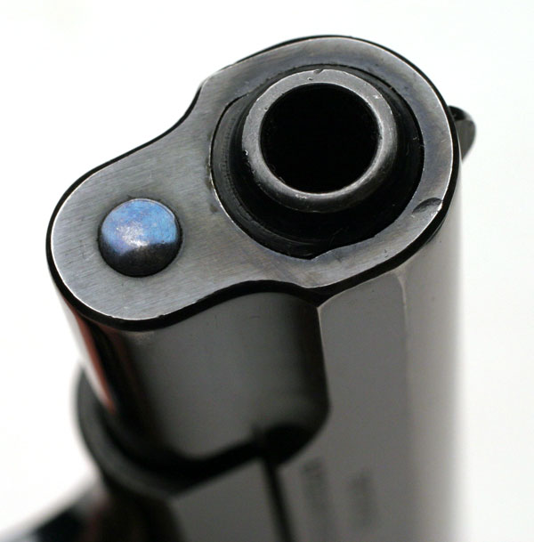 Colt Model 1903 Pocket Hammerless .32 ACP Serial Number 106716 Early Type III - Fire blue slide plug on 106716.  The most distinguishing characteristic between the Type II and the Type II pistols is the elimination of the separate barrel bushing that was present on both the Type I and Type II pistols.  The slide plug was replaced with a smaller version and the barrel had an integrated bushing.