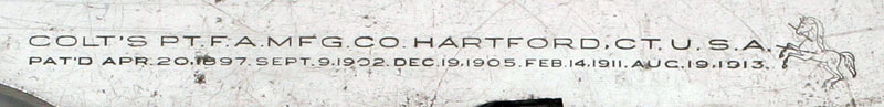Left side of slide has patent dates that appear on the Model of 1911 and Government Model pistols: