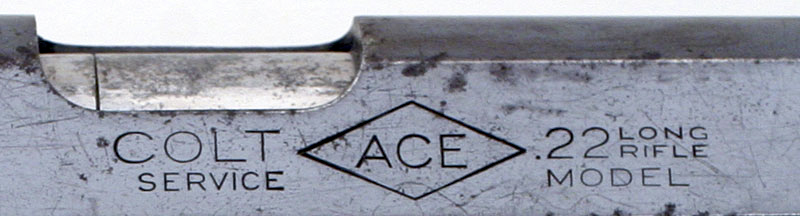 Right side slide markings are from the Ace roll die with the words "SERVICE" and "MODEL" on opposing sided of the bottom of the Ace diamond on the right side: