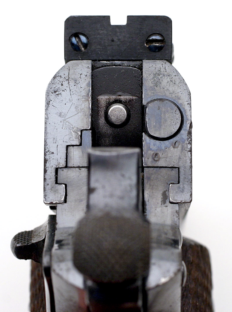 Colt Service Model Ace Serial Number SM355 - top view of Stevens sight.