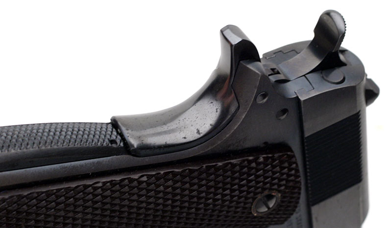 The initials of Major Charles S. Reed (C.S.R.), Officer in Charge of Outside Inspection, were stamped on all M1911A1 pistols manufactured in 1940, signifying government acceptance of the pistol. His initials were stamped on the left side of the receiver below the slide stop in accordance with Ordnance drawings. The initials C.S.R. were also stamped on the top of the receiver near the disconnector hole to indicate provisional inspection, replacing the previous letter "R" within an oval.