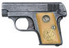 February Colt 1908 Vest Pocket .25 ACP Serial Number 163166 - Factory Master Engraved by William H. Gough Blue Finish, Gold Inlaid Monogrammed Ivory Stocks