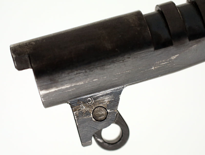 Colt Model 1911A1 .45 ACP serial number 722980 (ca. 1941) - The barrel has a 10 on the right lug.