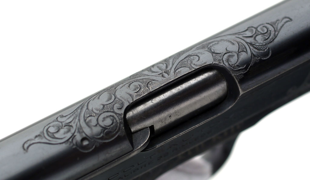 Colt Pocket Hammerless 1903 .32 ACP serial number 542617 Factory Engraved - engraving on top slide around ejection port.