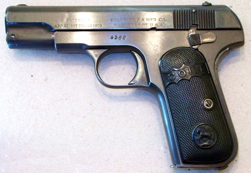 Colt 1908 Pocket Hammerless .380 ACP serial number 4559 factory inscribed "C.P.D. No. 6" on grip safety - right side.