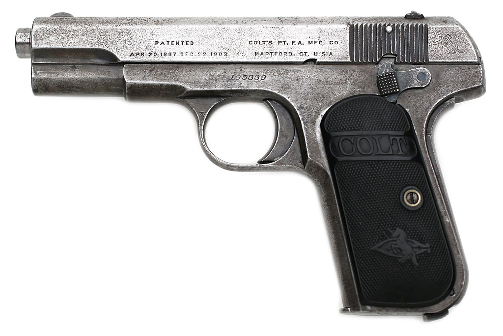Colt Model 1903 Pocket Hammerless .32 ACP serial number 195339 Factory Roll Marked "W.P.D. No. 15" on right side of frame (left side)
