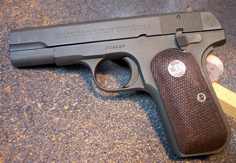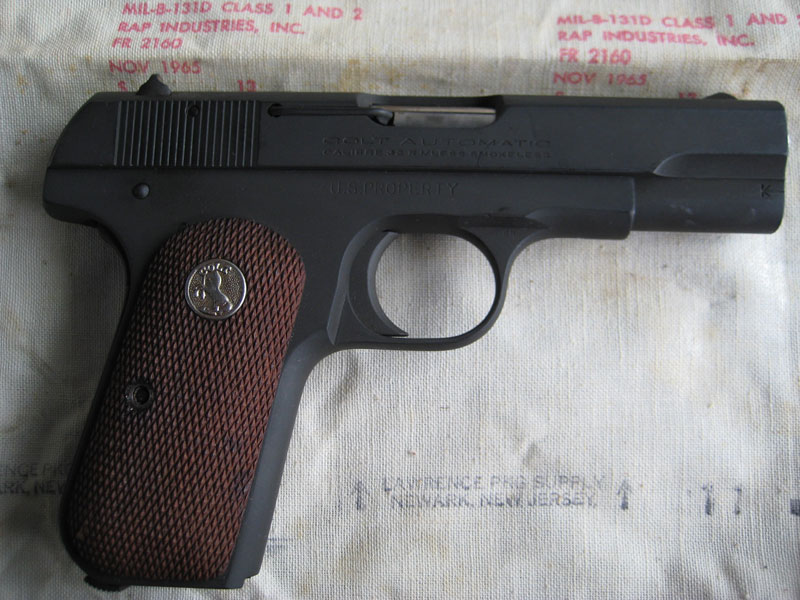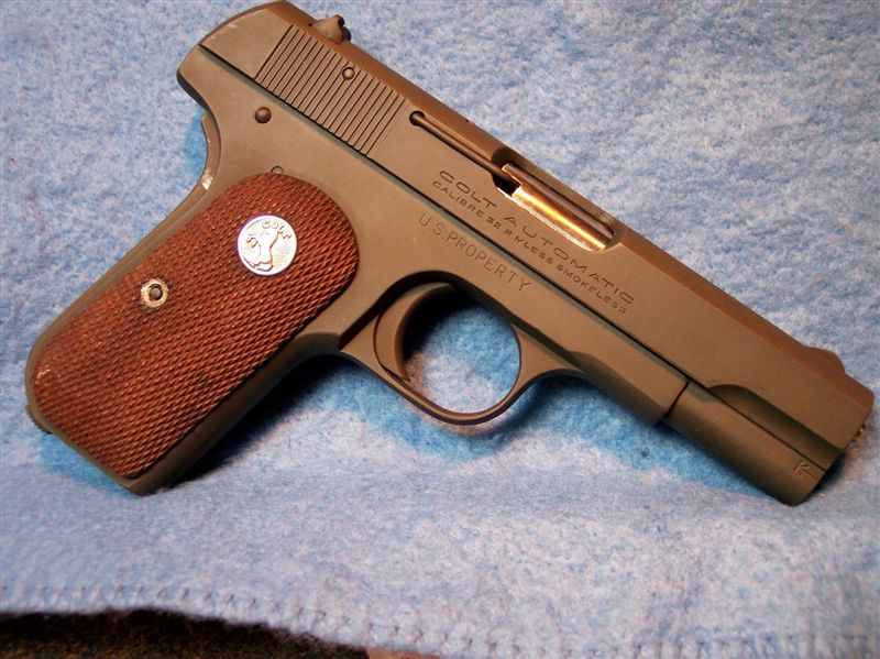Colt 1903 Pocket hammerless .32 ACP - serial number 568467 right side showing U.S. PROPERTY mark on frame.